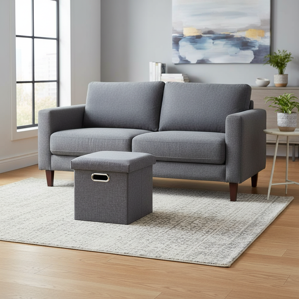 Repose Pied Salon Gris Carré Rangement : Usage concret