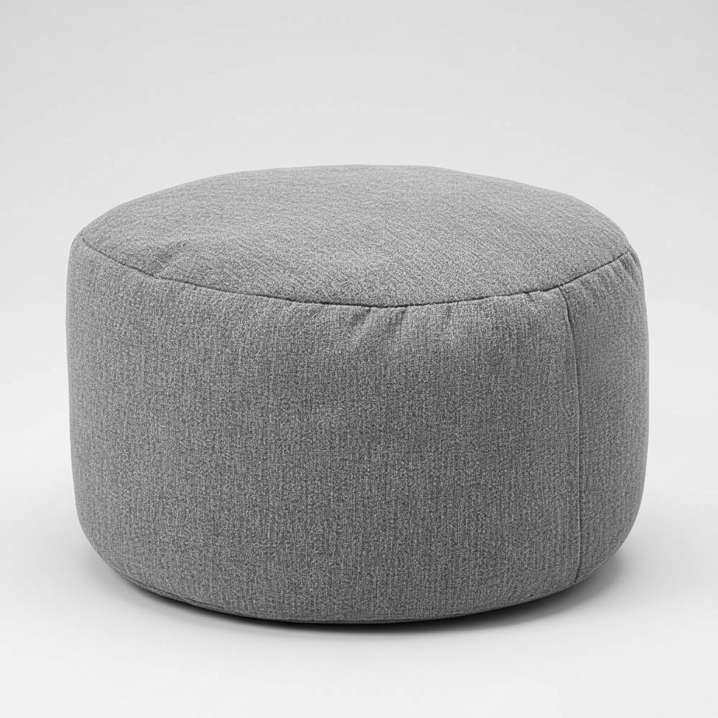 Repose Pied Salon Gris Lin Pouf : Confort Rond et Tissu Naturel
