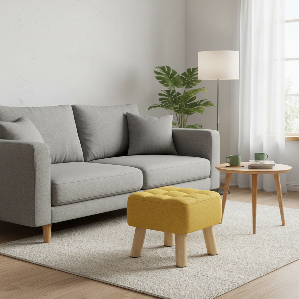 Votre salon mérite une touche de confort et de couleur avec ce repose-pieds jaune capitonné.