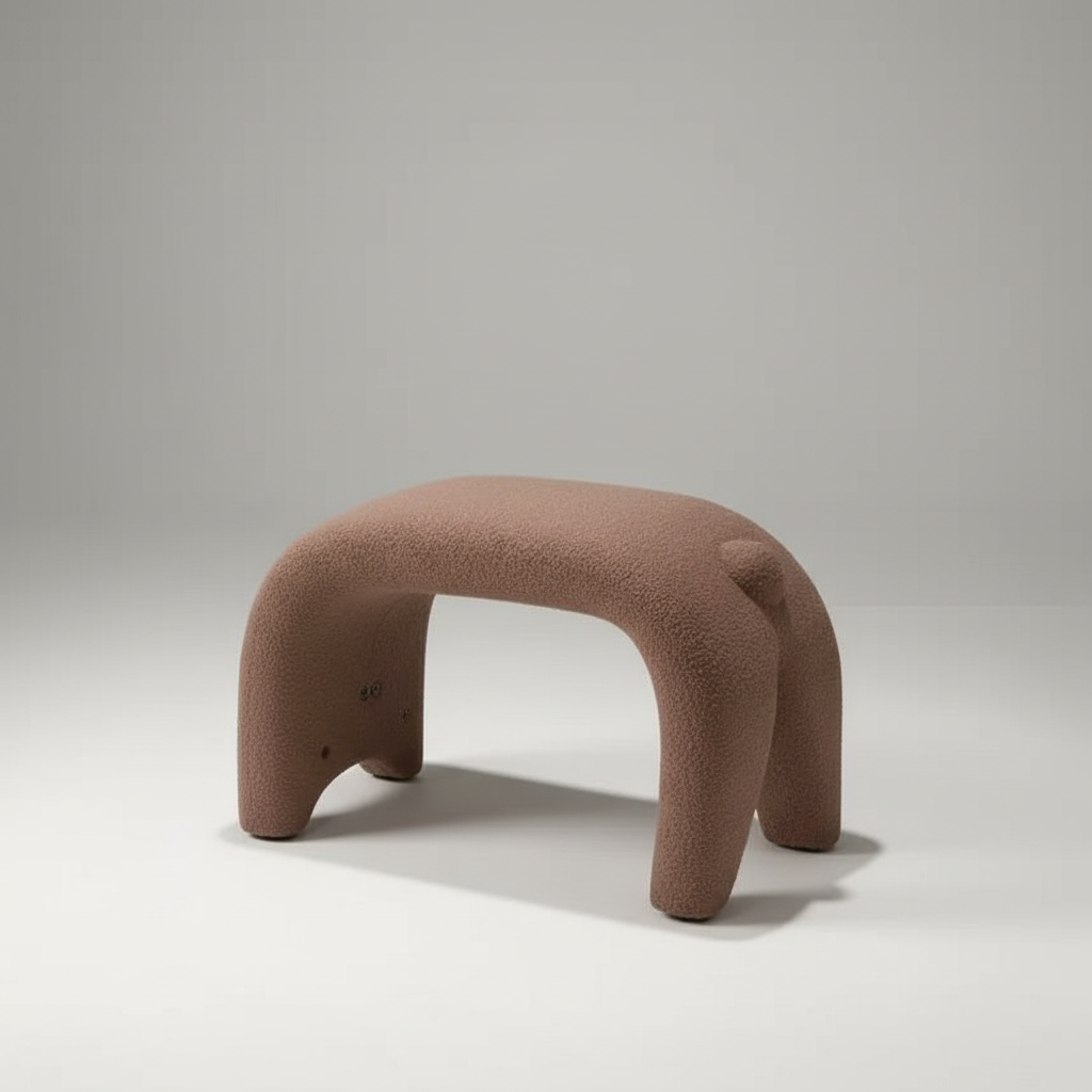 Ce Repose Pied Salon marron bouclé forme chat est un tabouret d'appoint ou un support pour les pieds, revêtu d'un tissu texturé. Sa conception aux lignes douces et sa couleur unie s'intègrent dans divers intérieurs.