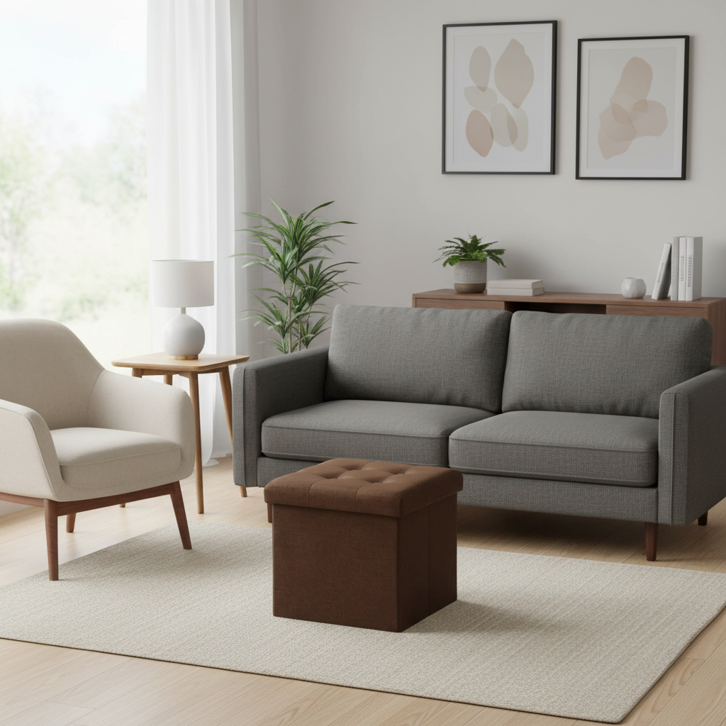 Repose Pied Salon Marron Capitonné Rangement : Usage Quotidien