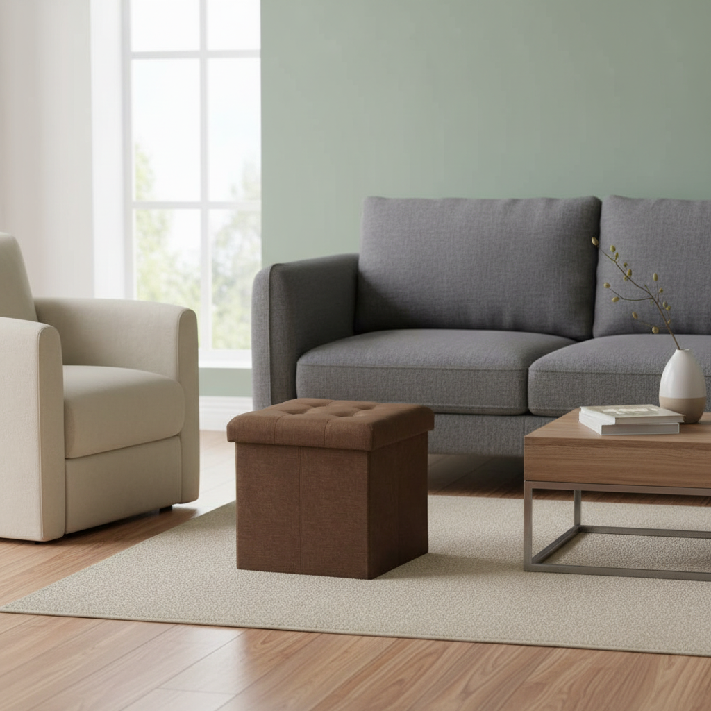 Repose Pied Salon Marron Capitonné Rangement : Pliable et Multifonctionnel