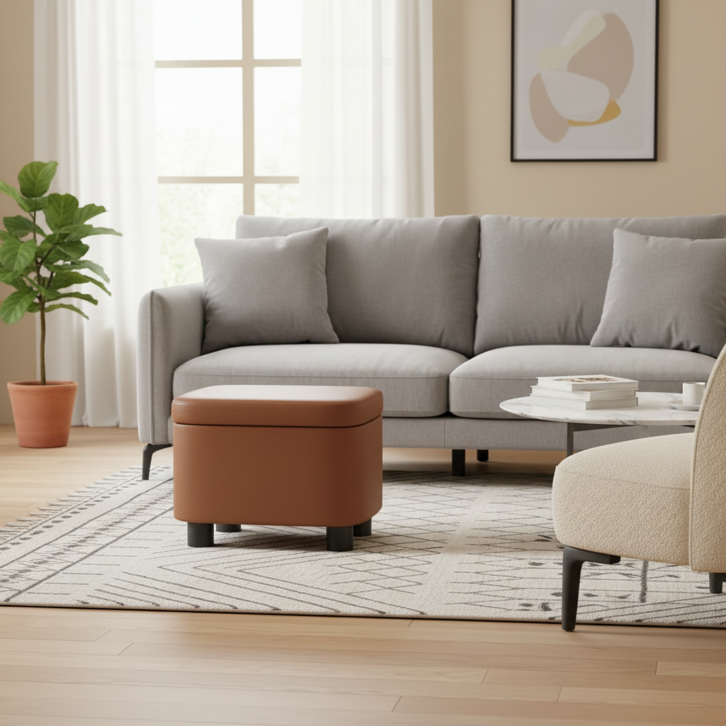 Ce repose-pied marron améliore le confort en offrant un soutien pour les jambes après une longue journée. Son espace de rangement intégré permet de garder le salon ordonné, en stockant télécommandes, magazines ou petites couvertures à portée de main du canapé.