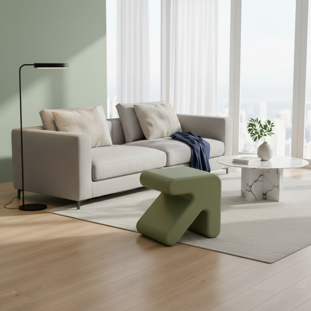 Apportez une touche de design unique à votre salon avec ce repose-pieds moderne en forme de flèche, d'un vert apaisant.