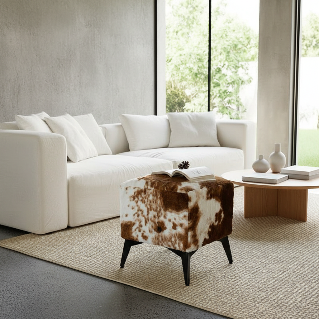 Ajoutez une touche d'originalité et de confort à votre intérieur avec notre repose-pieds motif vache.