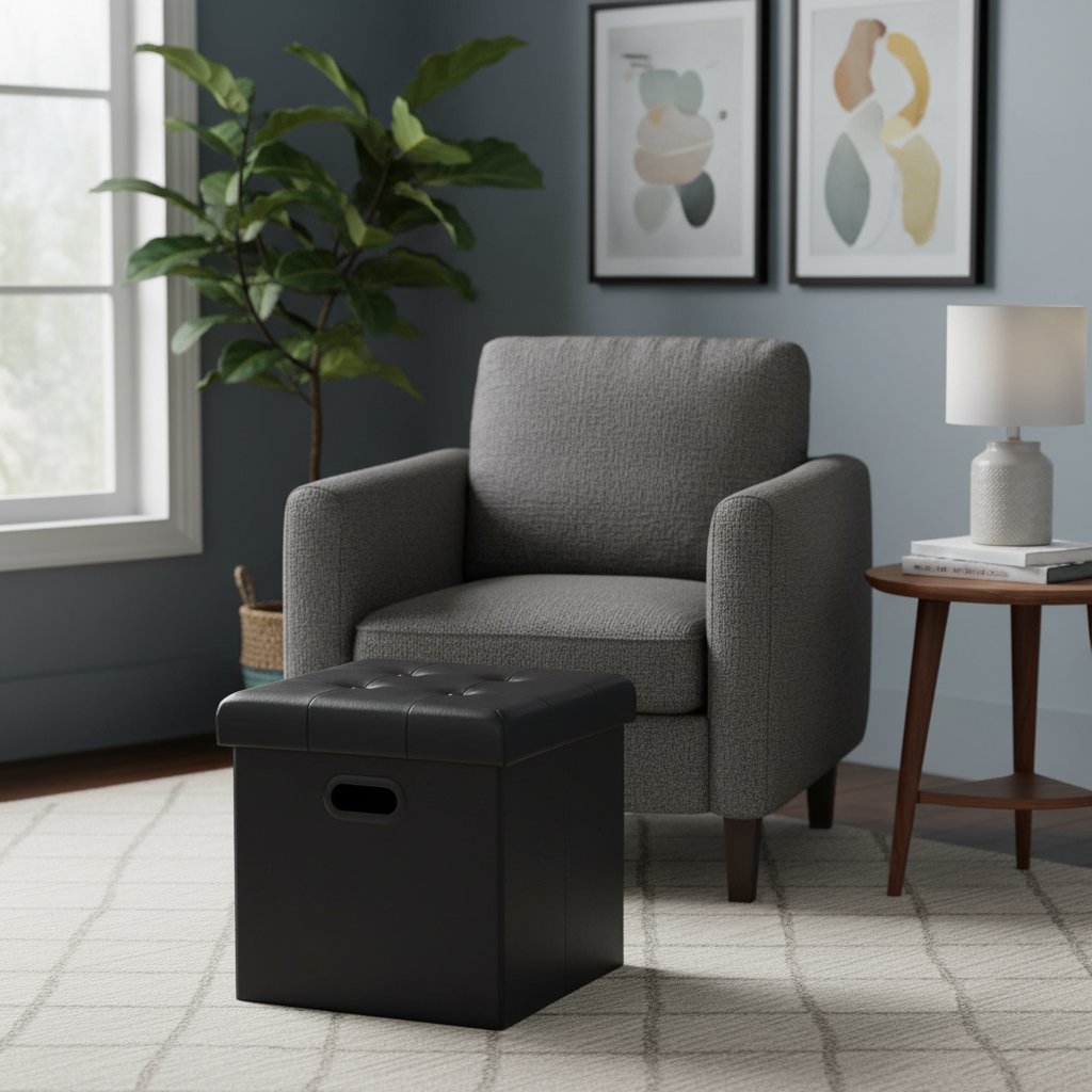 Repose Pied Salon Noir Capitonné Rangement : Usage Quotidien