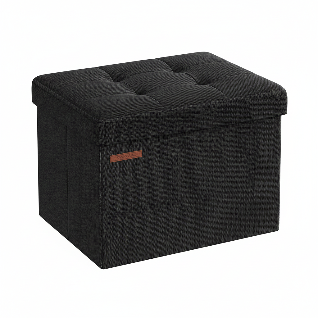 Ce Repose Pied Salon noir capitonné rangement est un pouf pliant conçu pour offrir à la fois une assise d'appoint et un espace de stockage de 32 litres. Sa conception robuste lui permet de supporter une charge statique maximale de 130 kg.