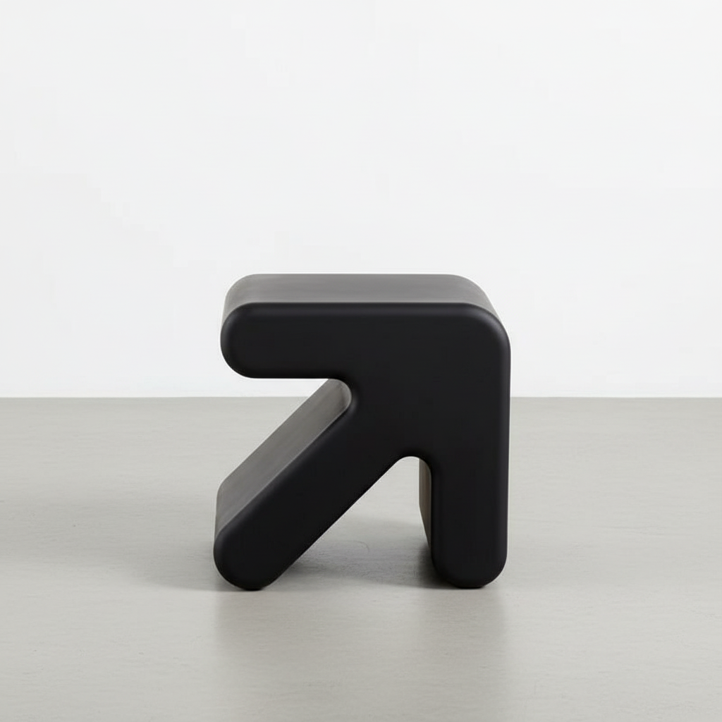 Ce repose pied de salon noir présente une forme de flèche moderne et épurée. Il est conçu pour offrir un soutien confortable aux pieds tout en s'intégrant discrètement dans un intérieur contemporain.