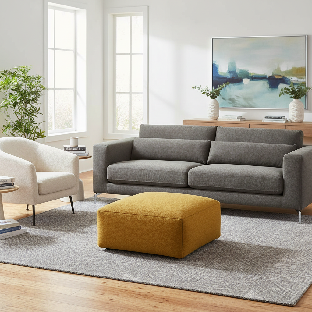 Repose Pied Salon Ocre Carré Ottoman : Usage Quotidien et Décoration