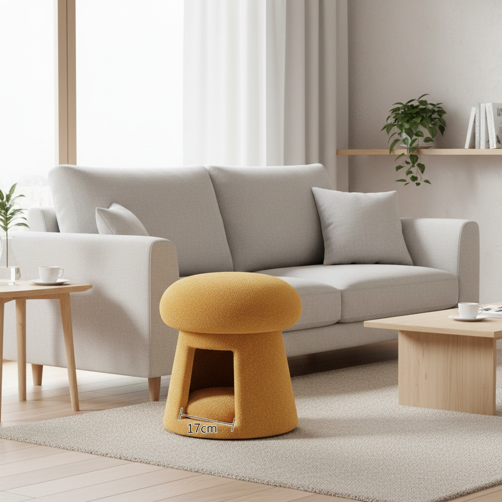 Ce Repose Pied Salon ocre moelleux combine un soutien confortable pour les pieds avec une niche intégrée pour votre chat. Son design en forme de champignon et son revêtement doux en font un élément à la fois fonctionnel et décoratif pour votre intérieur.