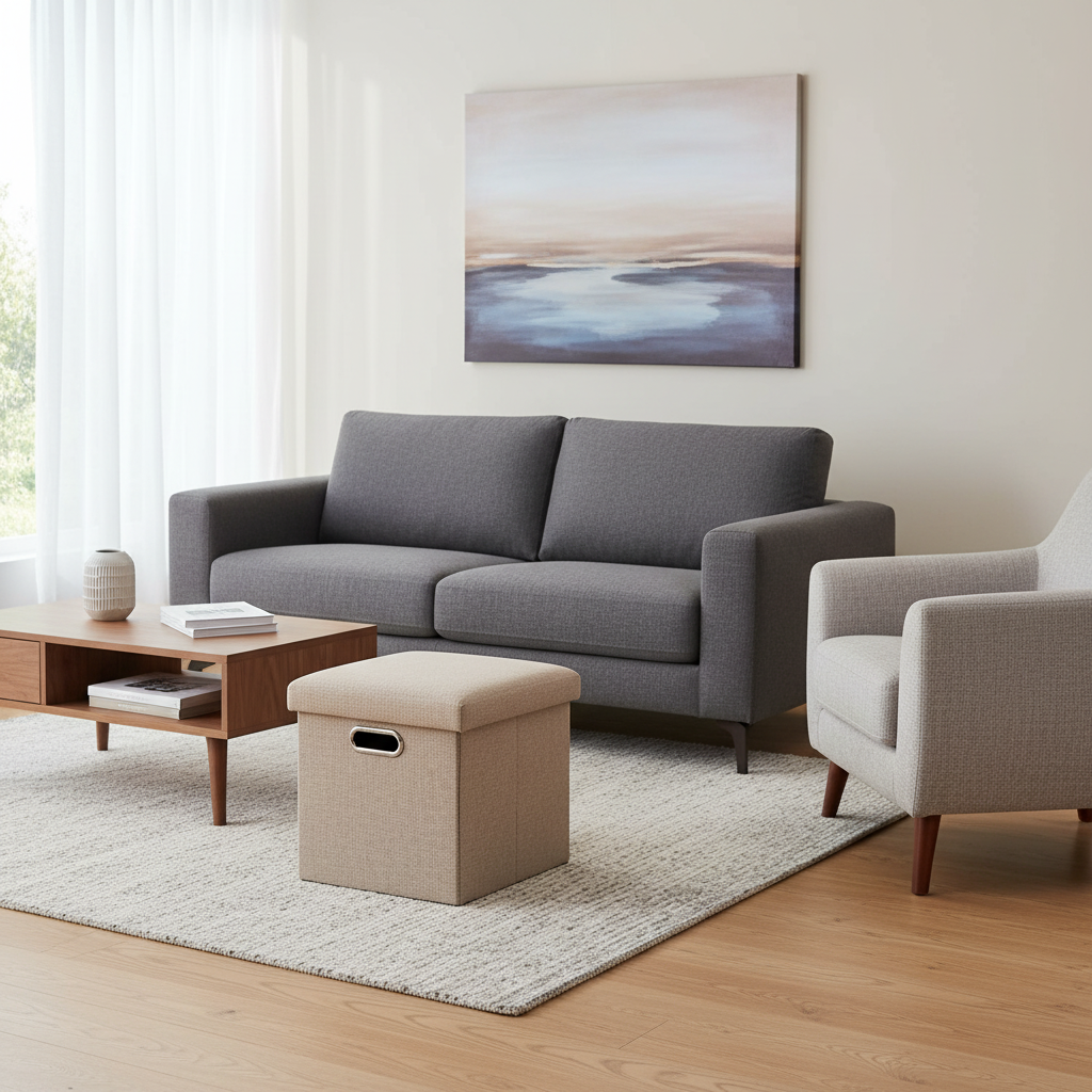 Repose Pied Salon Pliable Rangement Beige avec Espace de Stockage Intégré