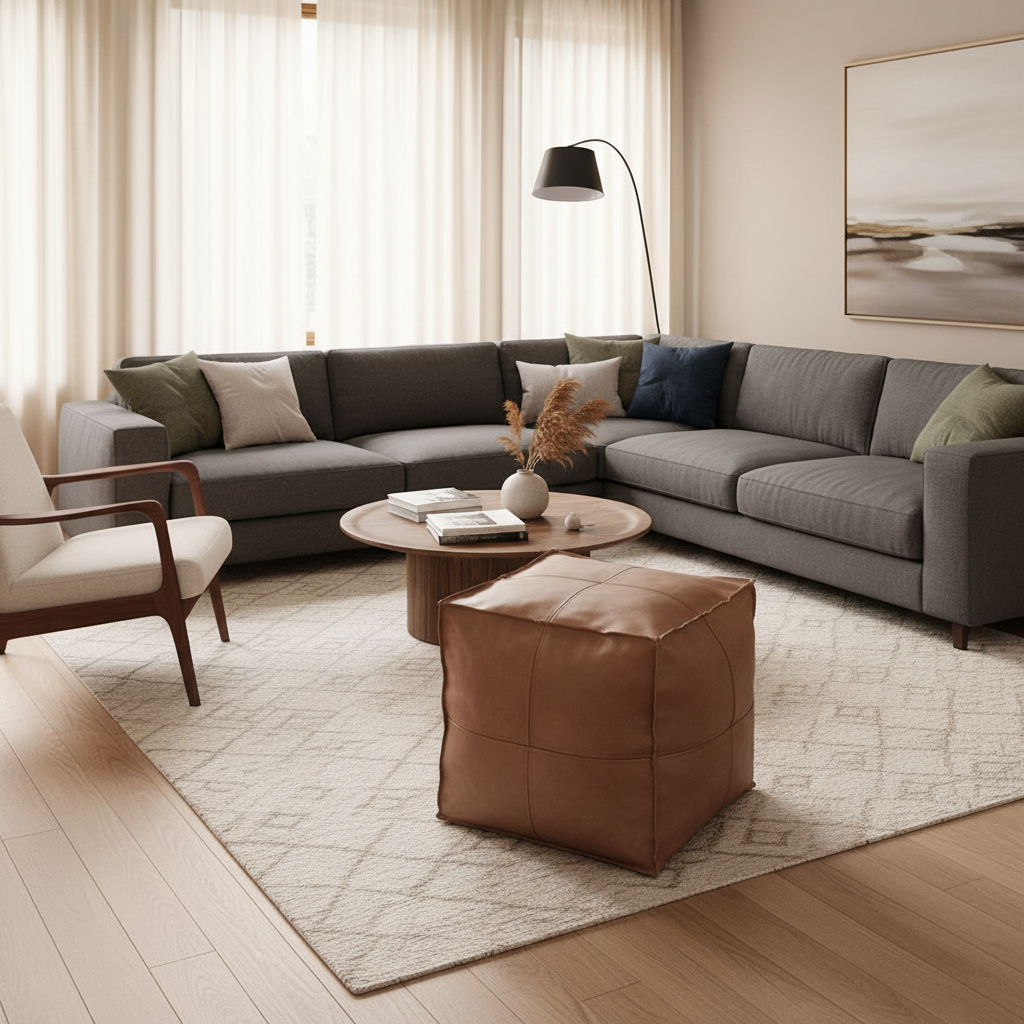 Repose Pied Salon Pouf Cuir Marron – Usage Quotidien