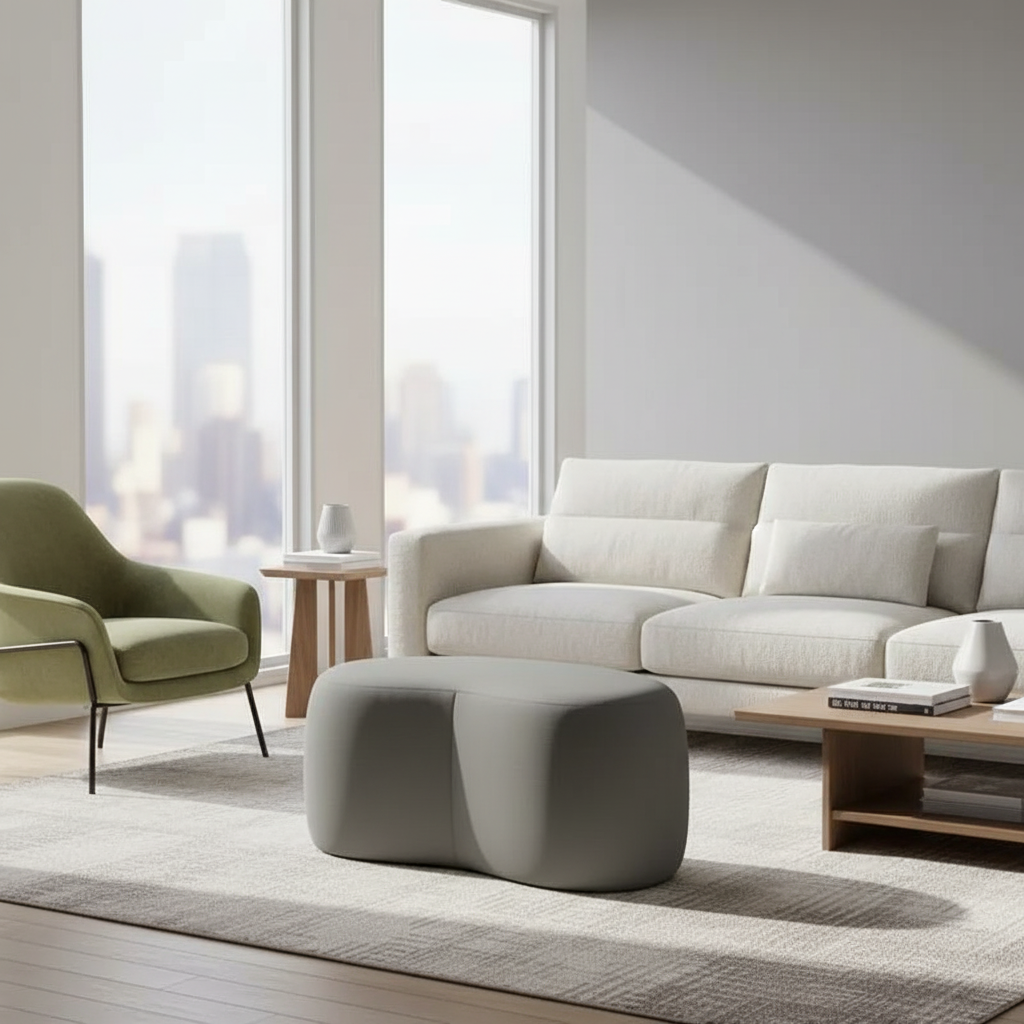 Repose Pied Salon pouf gris nordique au design asymétrique