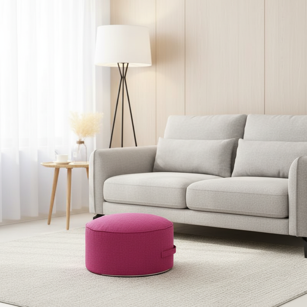 Repose Pied Salon pouf rond fuchsia – Confortable et Déhoussable