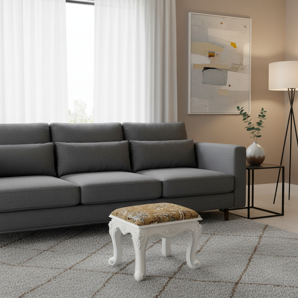Repose Pied Salon Retro tissu fleuri : Design Élégant et Confort Classique