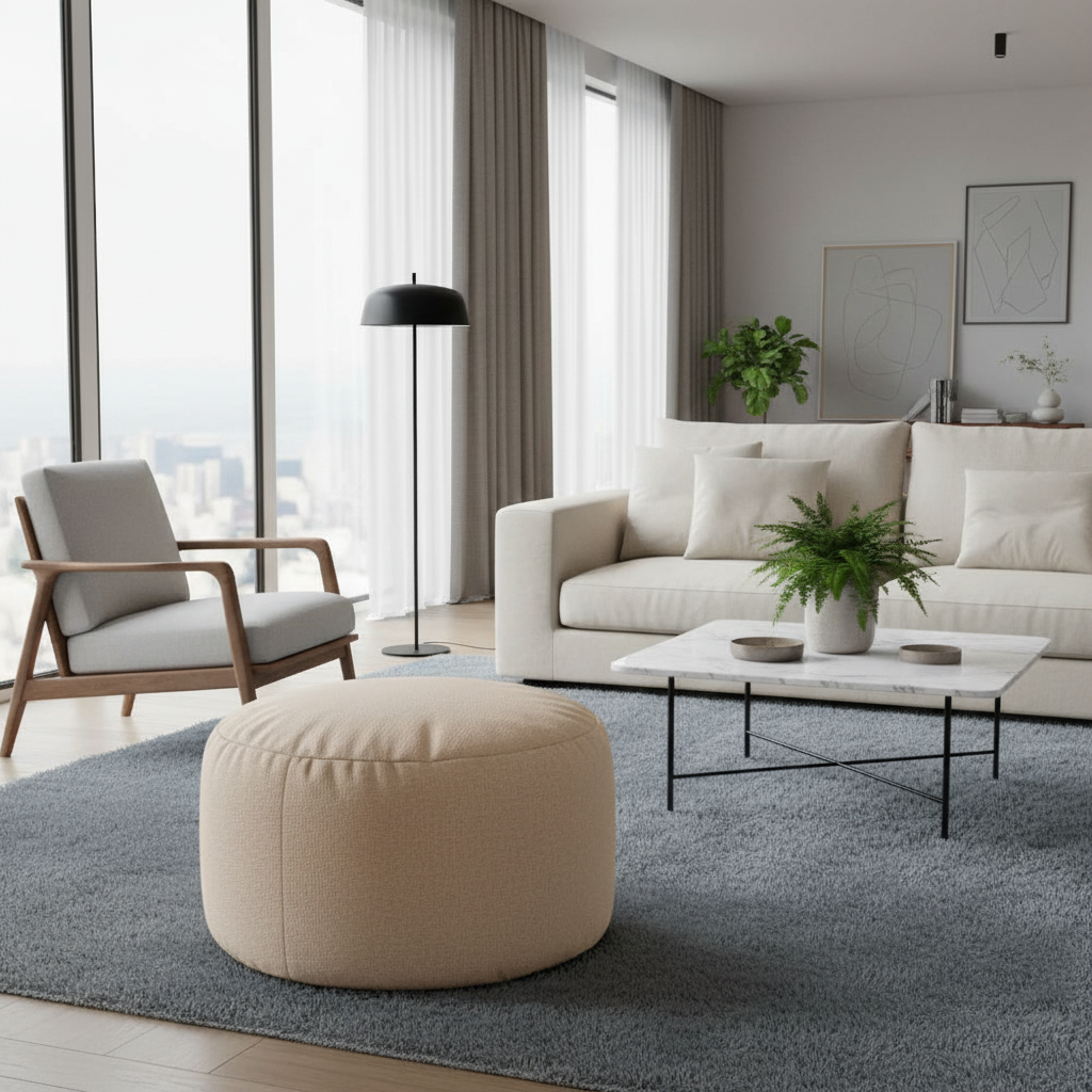 Repose Pied Salon rond lin Pouf : Confort et Design Compact