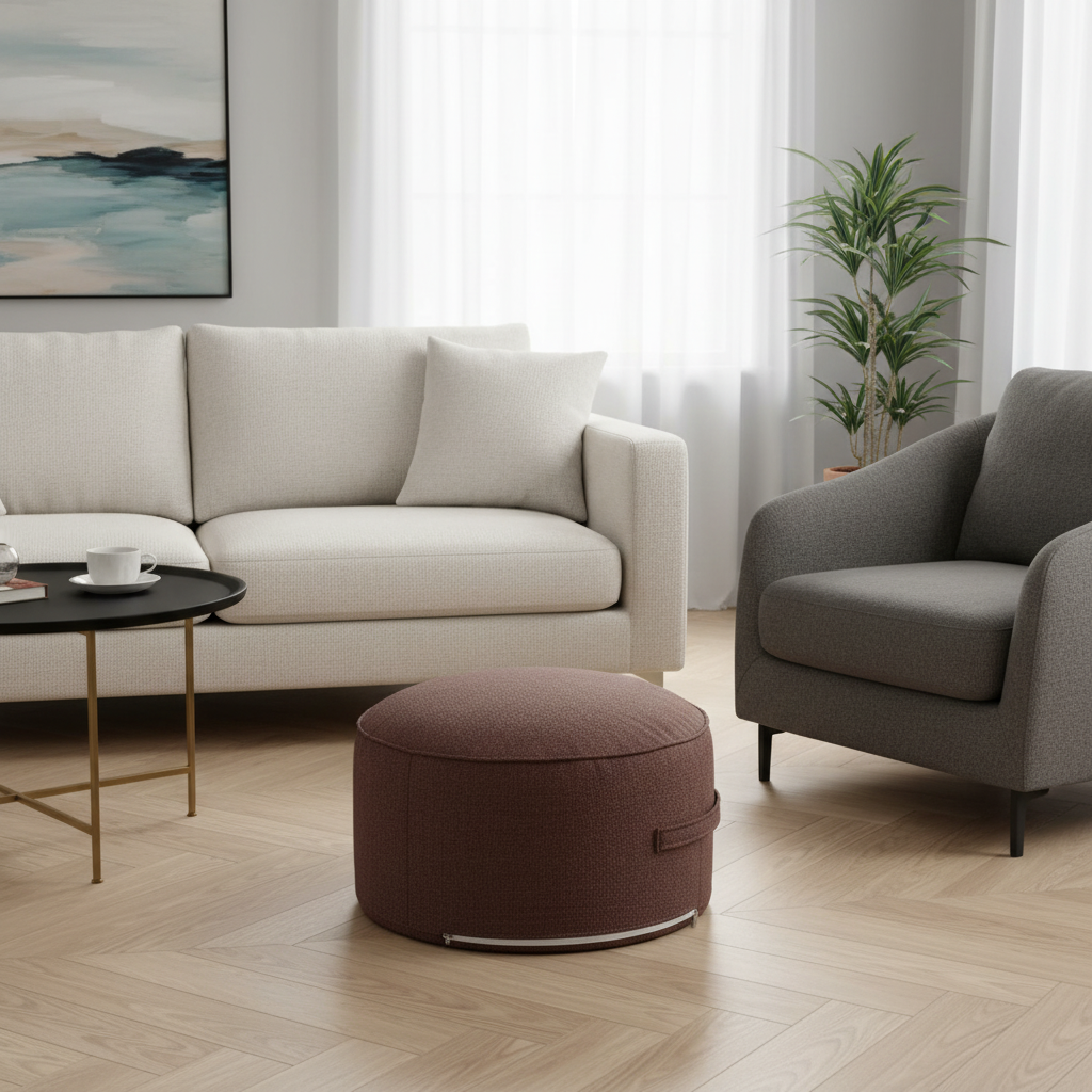 Repose Pied Salon Rond Marron Méditation : Confort et Design Amovible