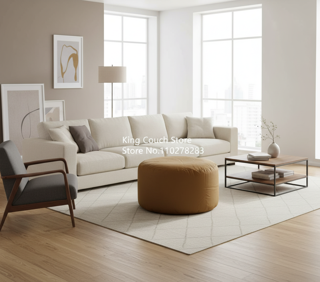 ↪︎ À propos de notre Repose Pied Salon Rond Marron Pouf