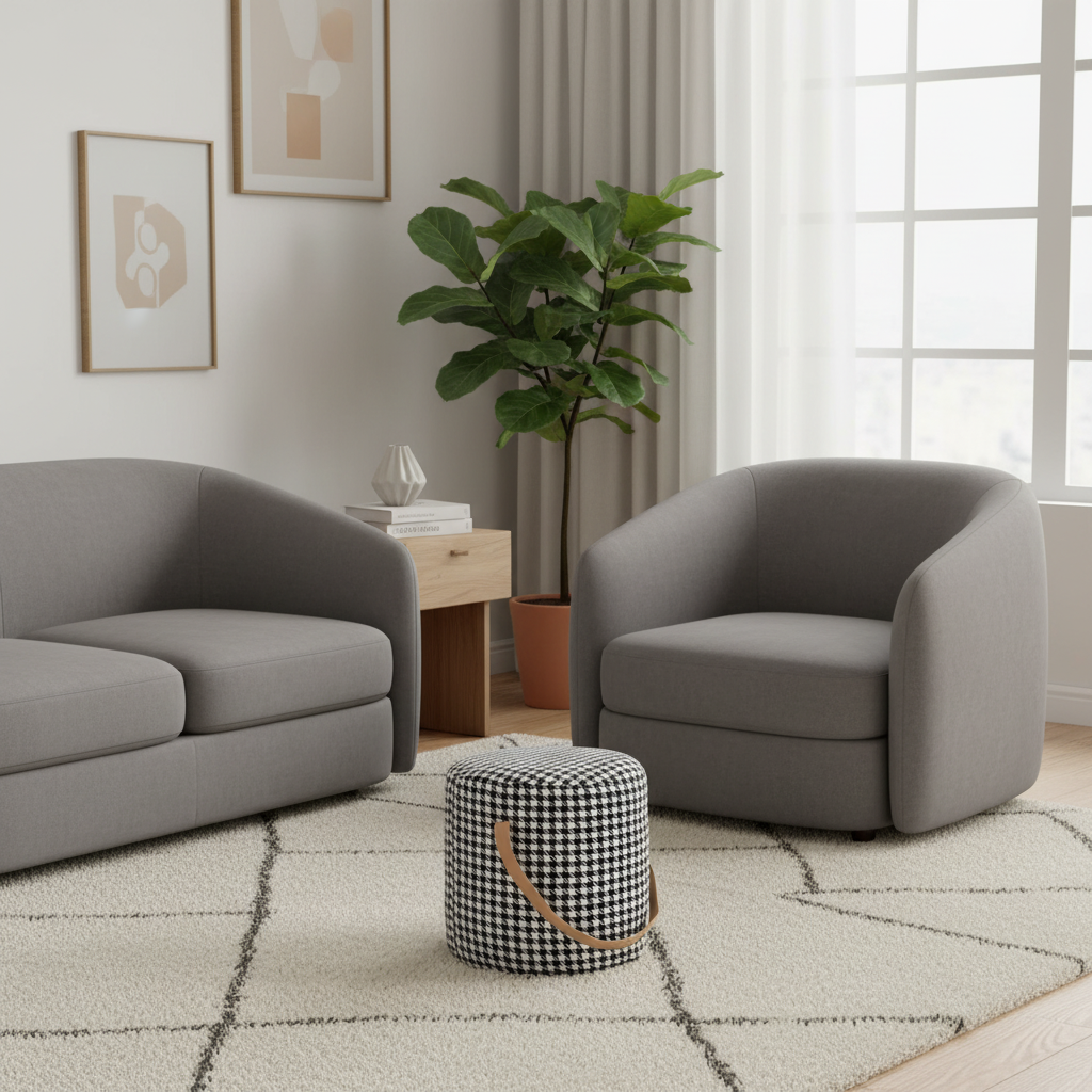 Repose Pied Salon Rond Pied-de-poule Canapé : Design Compact et Motif Pied-de-poule