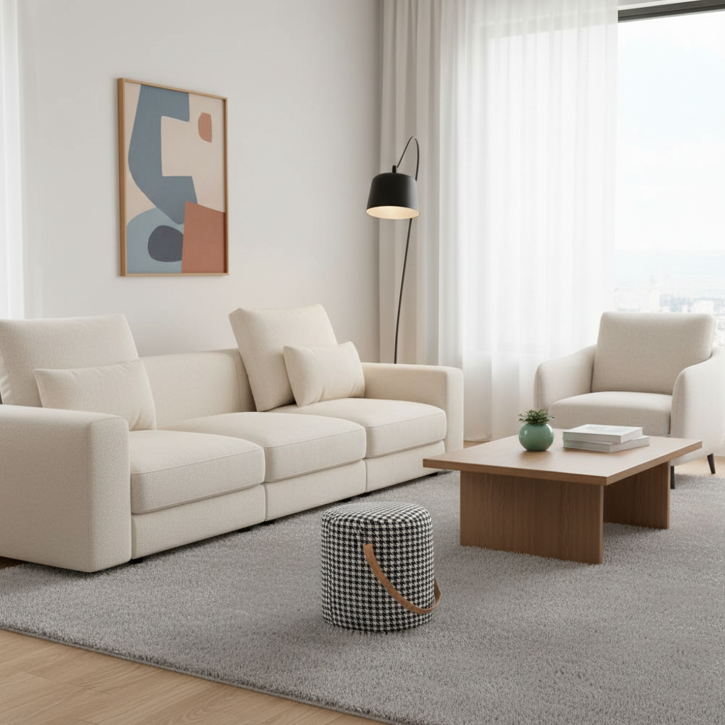 ↪︎ À propos de notre Repose Pied Salon Rond Pied-de-poule Canapé