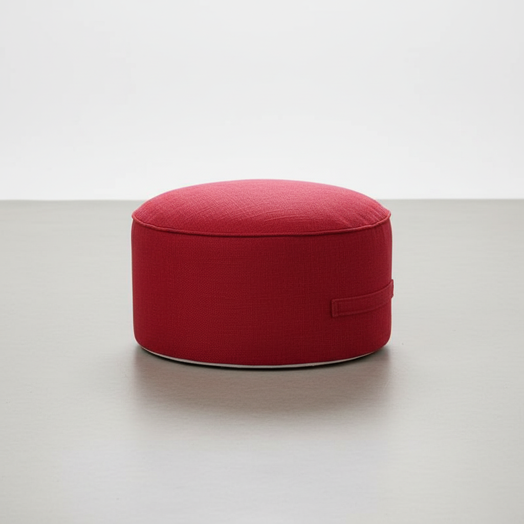 Repose Pied Salon Rond Rouge Méditation : Design Compact et Polyvalent