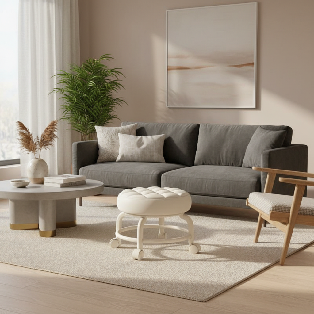 ↪︎ À propos de notre Repose Pied Salon rond similicuir rotatif