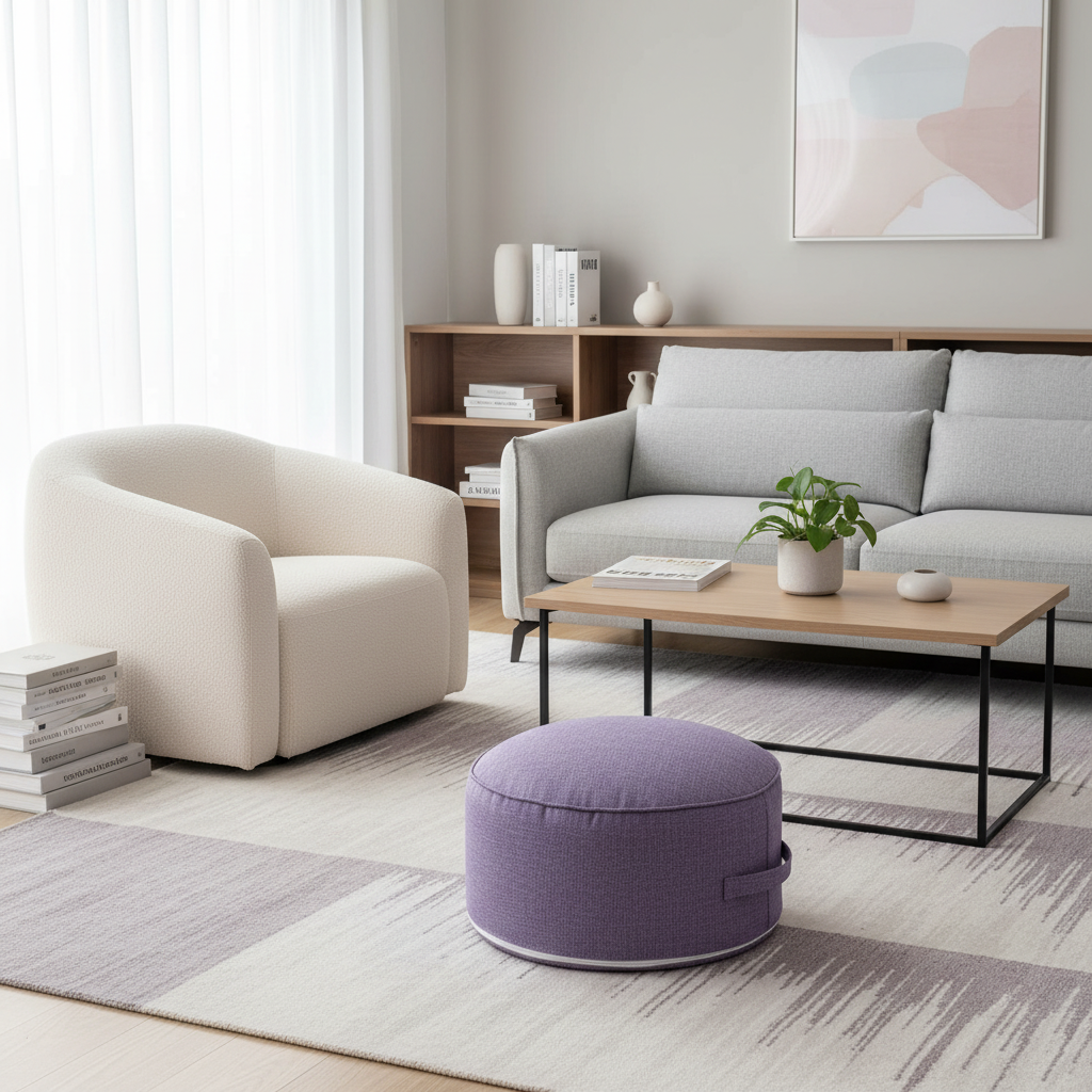 Repose Pied Salon rond violet méditation : Confort et Entretien Facilité