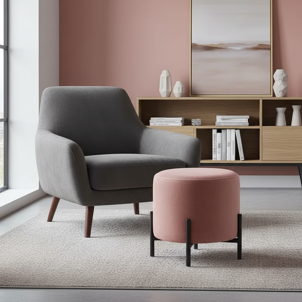 Repose Pied Salon Rose Velours Pouf : Rond et Robuste