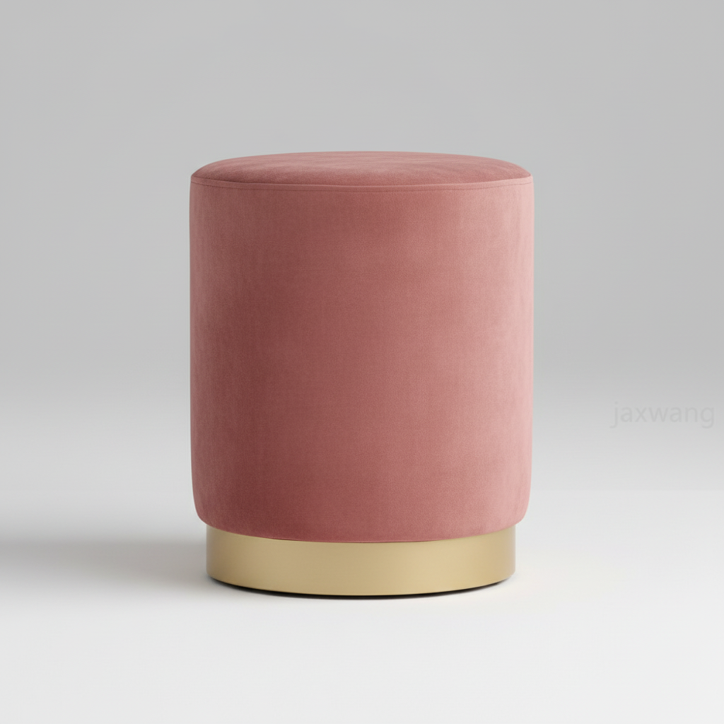 Repose Pied Salon Rose Velours Pouf : Design Cylindrique et Base Métallique