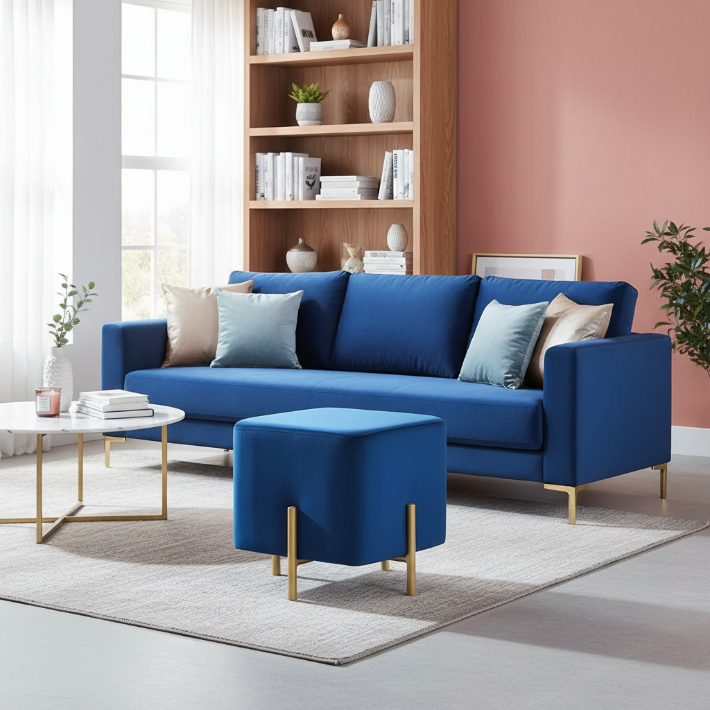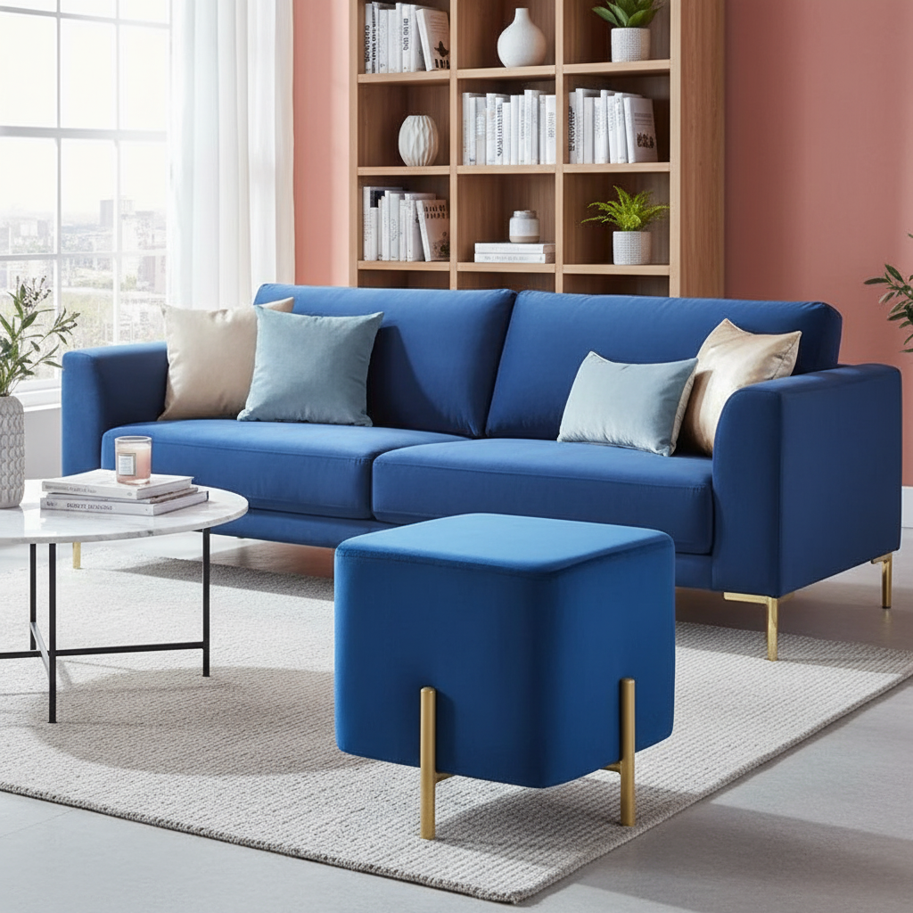Repose Pied Salon Velours Bleu Maquillage : Confort et Design Moderne