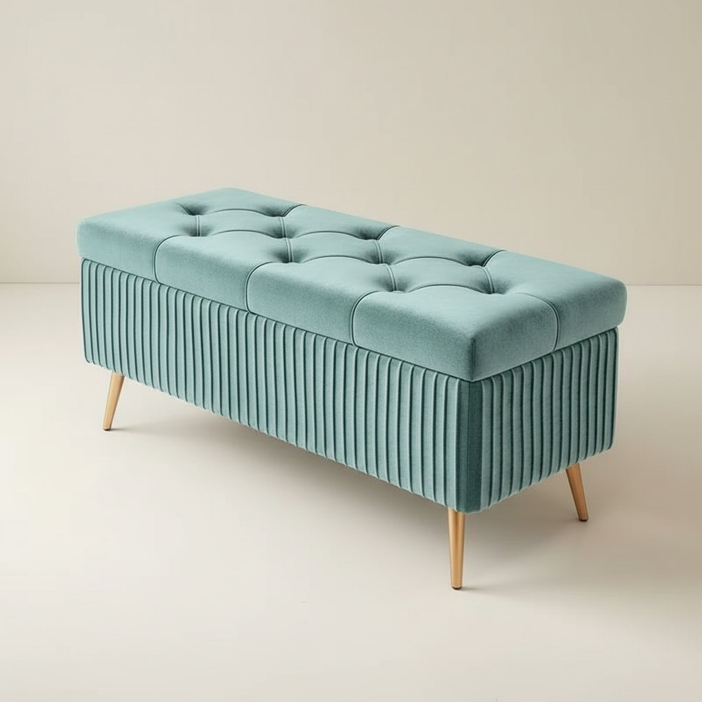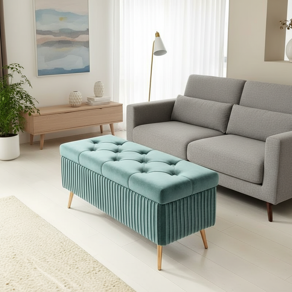 Repose Pied Salon velours capitonné rangement avec coffre intégré