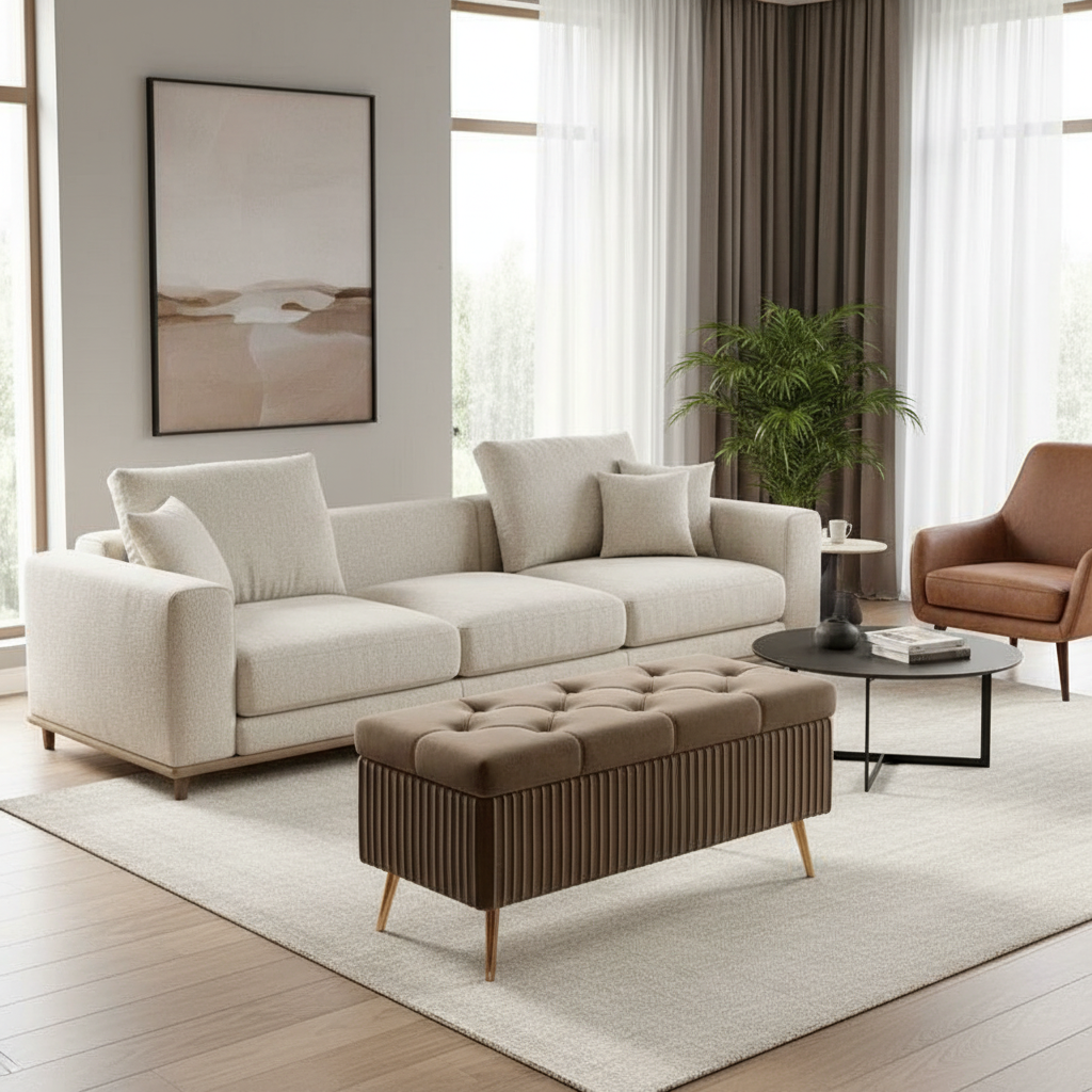 Repose Pied Salon velours capitonné rangement : Confort et Esthétique