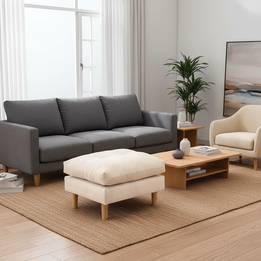 Repose Pied Salon velours crème canapé : Confort et Fonctionnalité