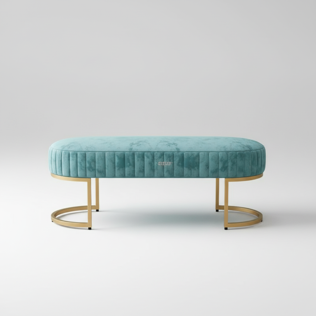 Repose Pied Salon Velours Doré Canapé : Design Ovale et Revêtement Côtelé