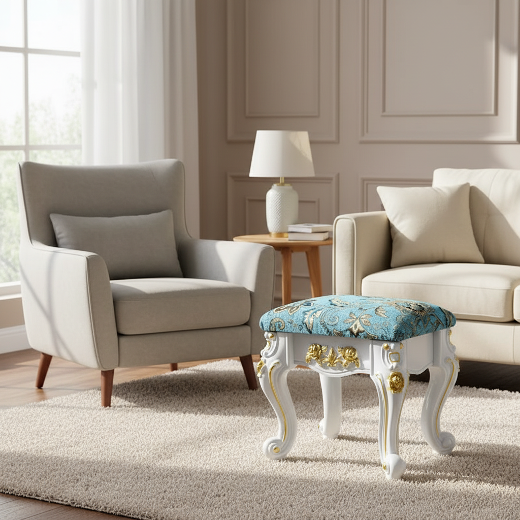 - Utilisation prévue : Repose-pieds domestique, tabouret d'appoint, siège décoratif ou élément d'ameublement pour salon, chambre ou coiffeuse.