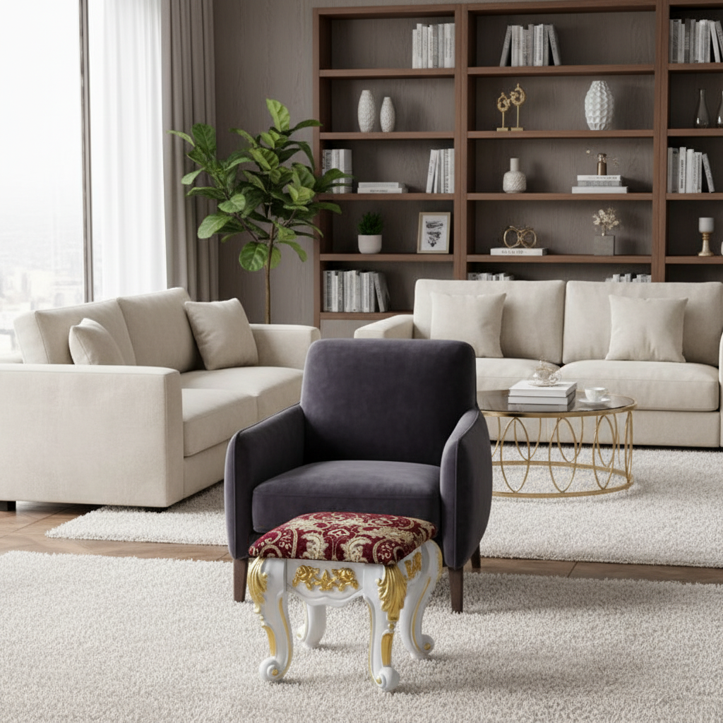↪︎ À propos de notre Repose Pied Salon Velours Doré Design Rangement