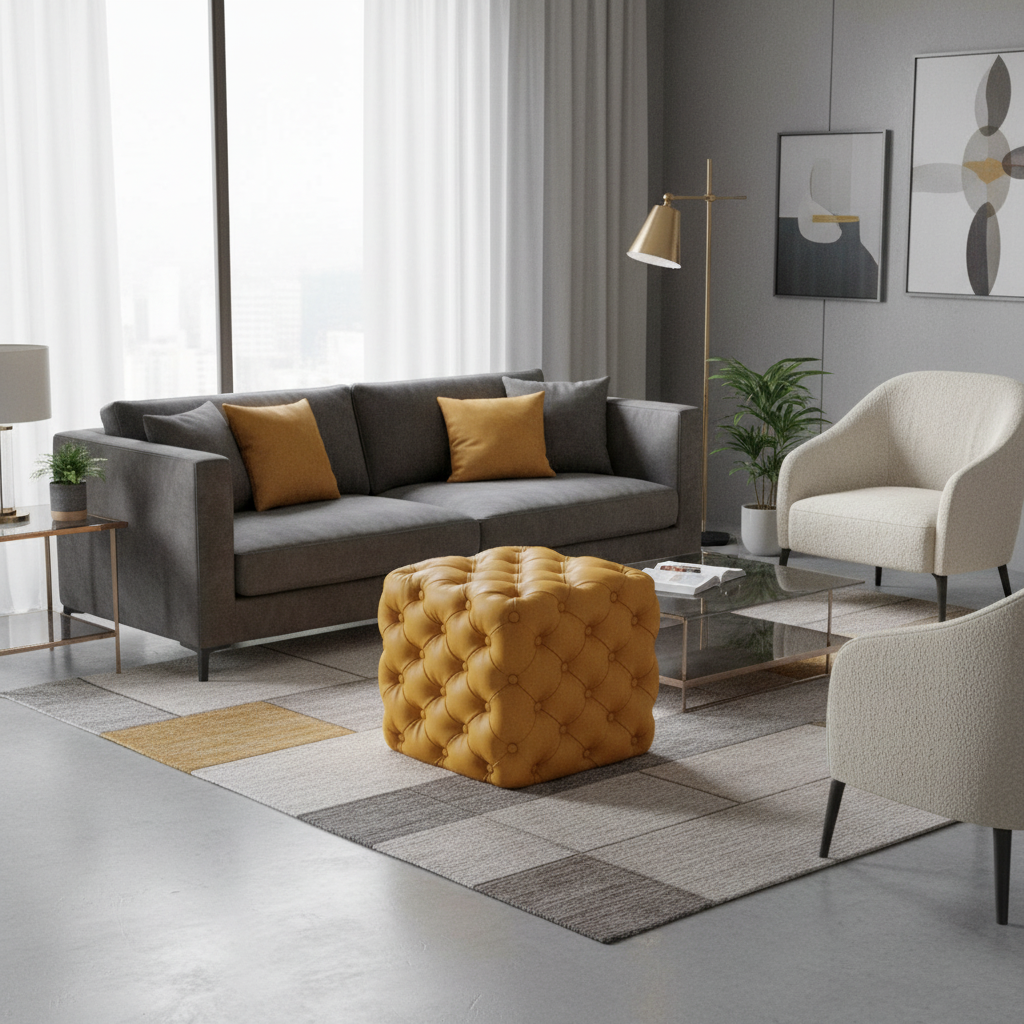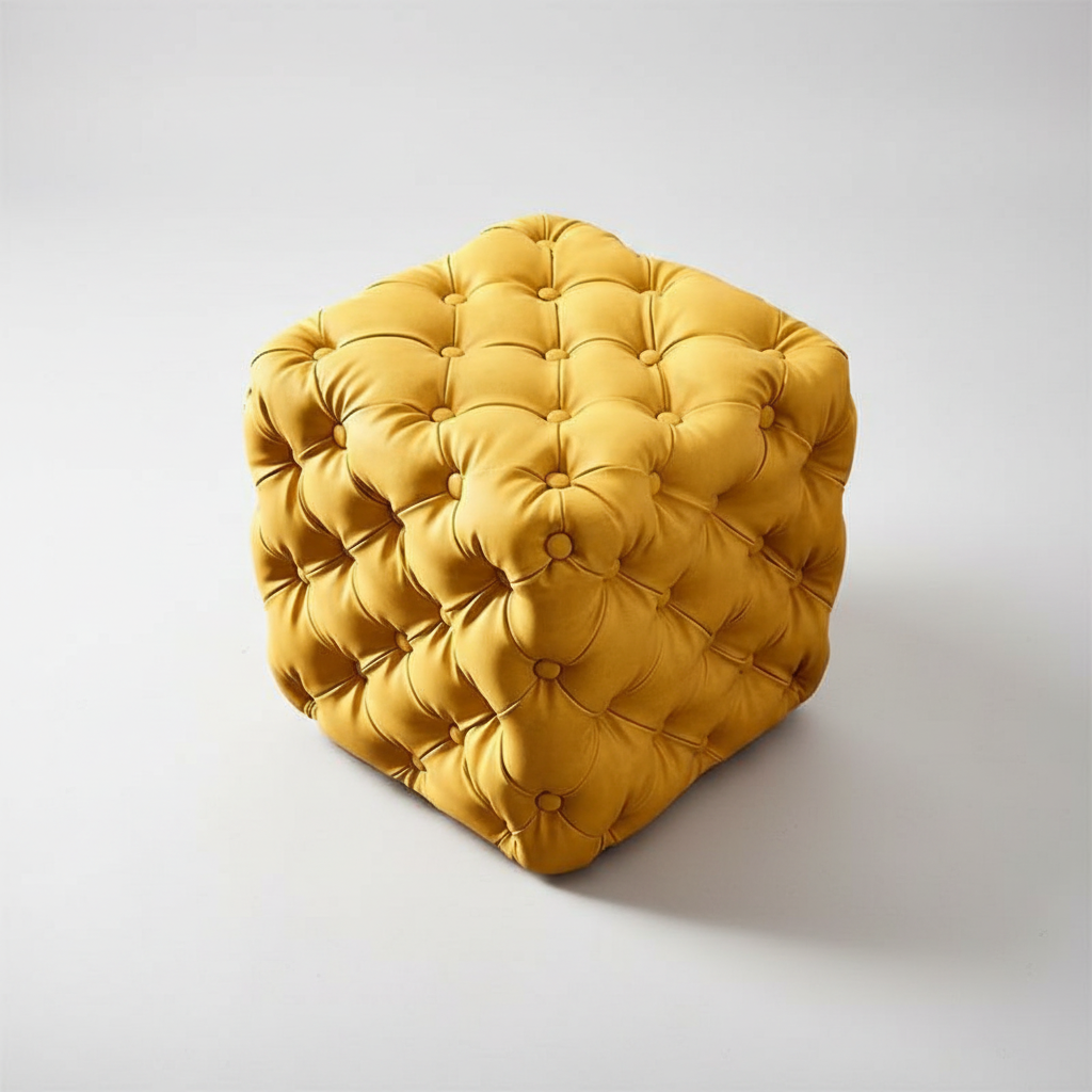 Repose Pied Salon Velours Jaune Canapé : Design Cubique et Capitonné