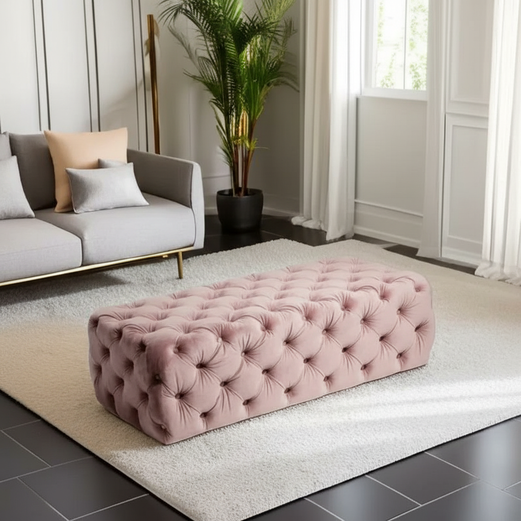 Repose Pied Salon Velours Rose Banc Capitonnage