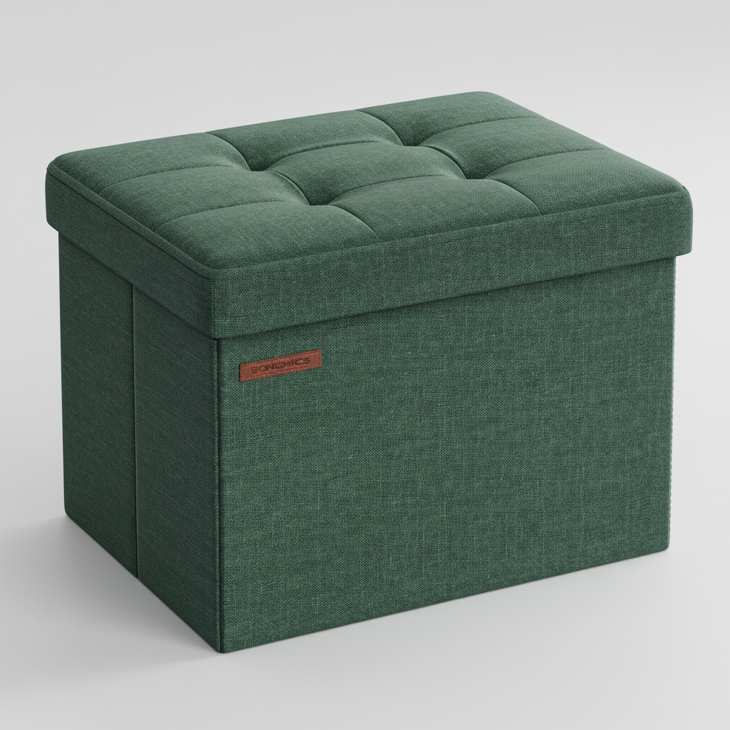 Repose Pied Salon Vert Capitonné Rangement Pliable avec Espace de Stockage