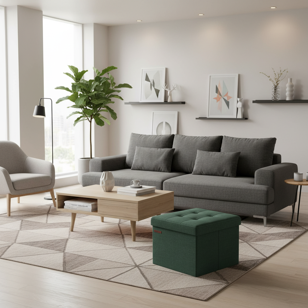 Repose Pied Salon Vert Capitonné Rangement : Confort et Optimisation de l'Espace