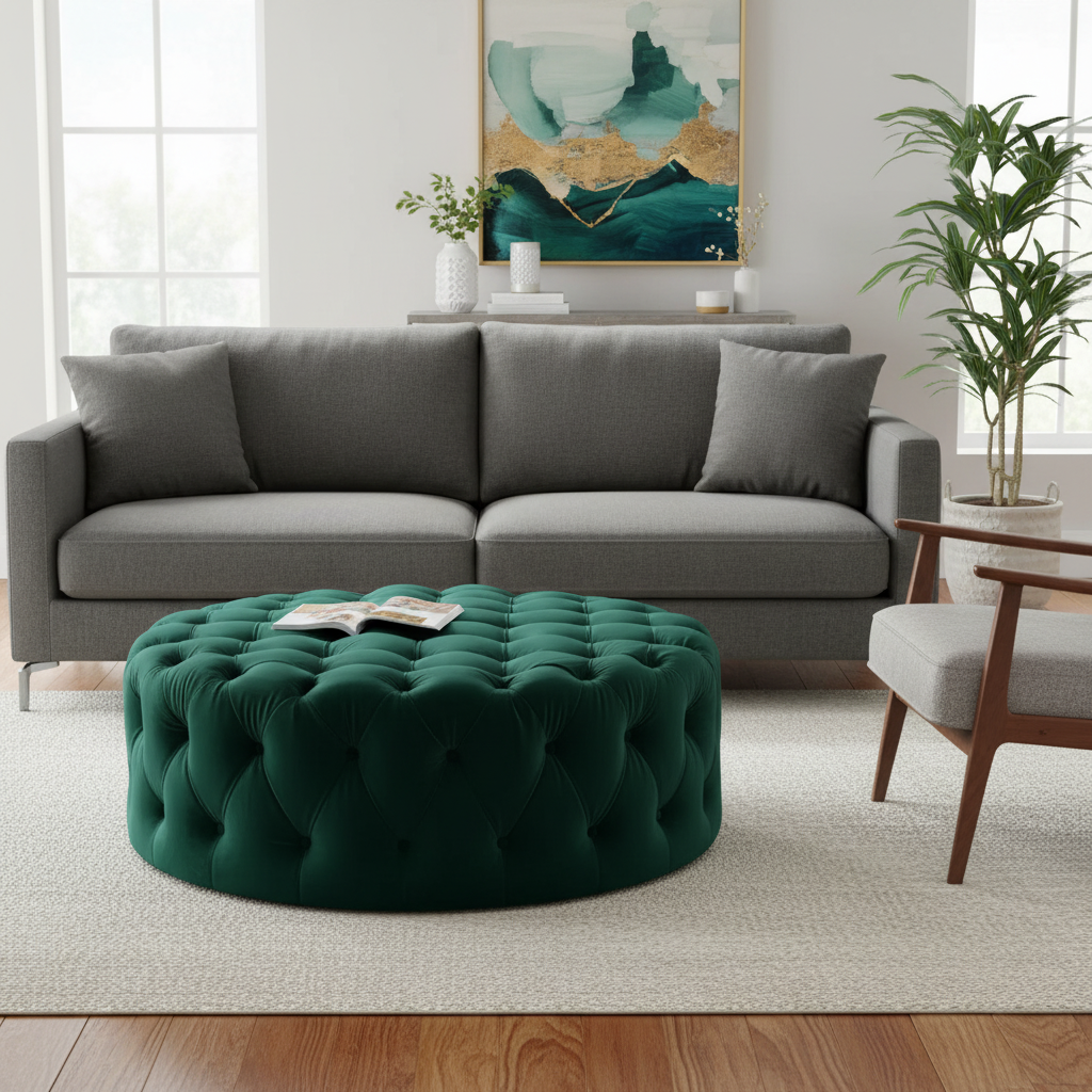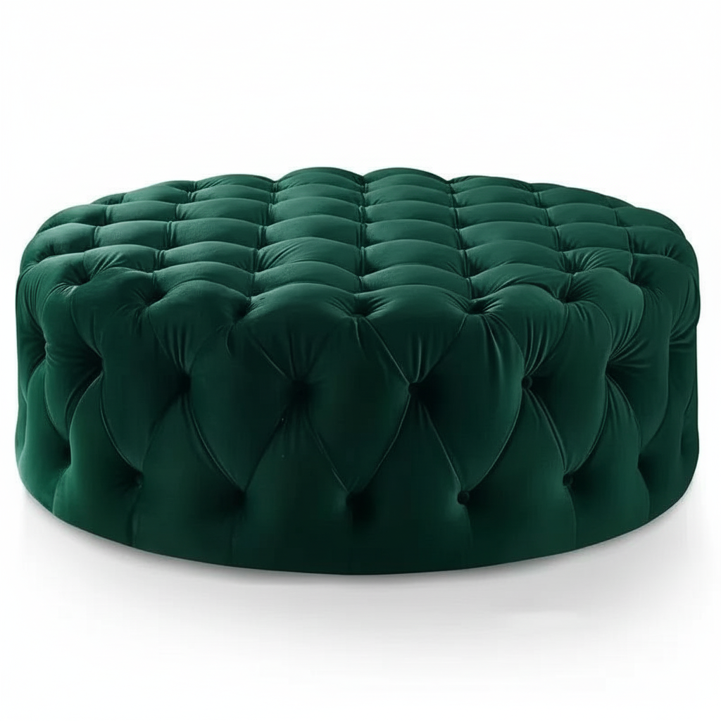 Repose Pied Salon Vert Velours Canapé Rond Capitonné