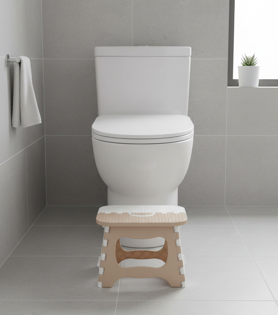 Enfin, pour un repose-pied toilette, placez-le au sol devant vos pieds afin d’adopter une position accroupie plus naturelle, bénéfique pour la digestion et le confort intestinal.