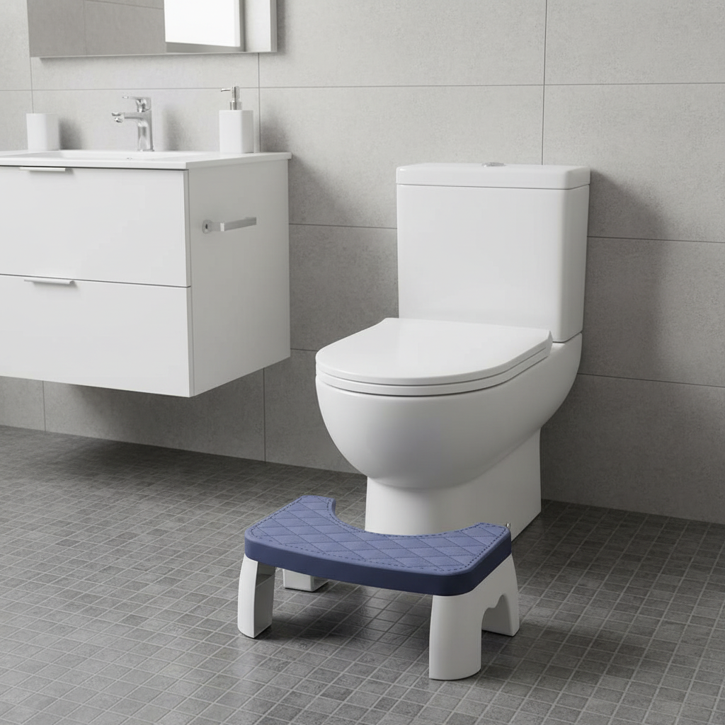 Enfin, pour un repose-pied toilette, placez-le au sol devant vos pieds afin d’adopter une position accroupie plus naturelle, bénéfique pour la digestion et le confort intestinal.