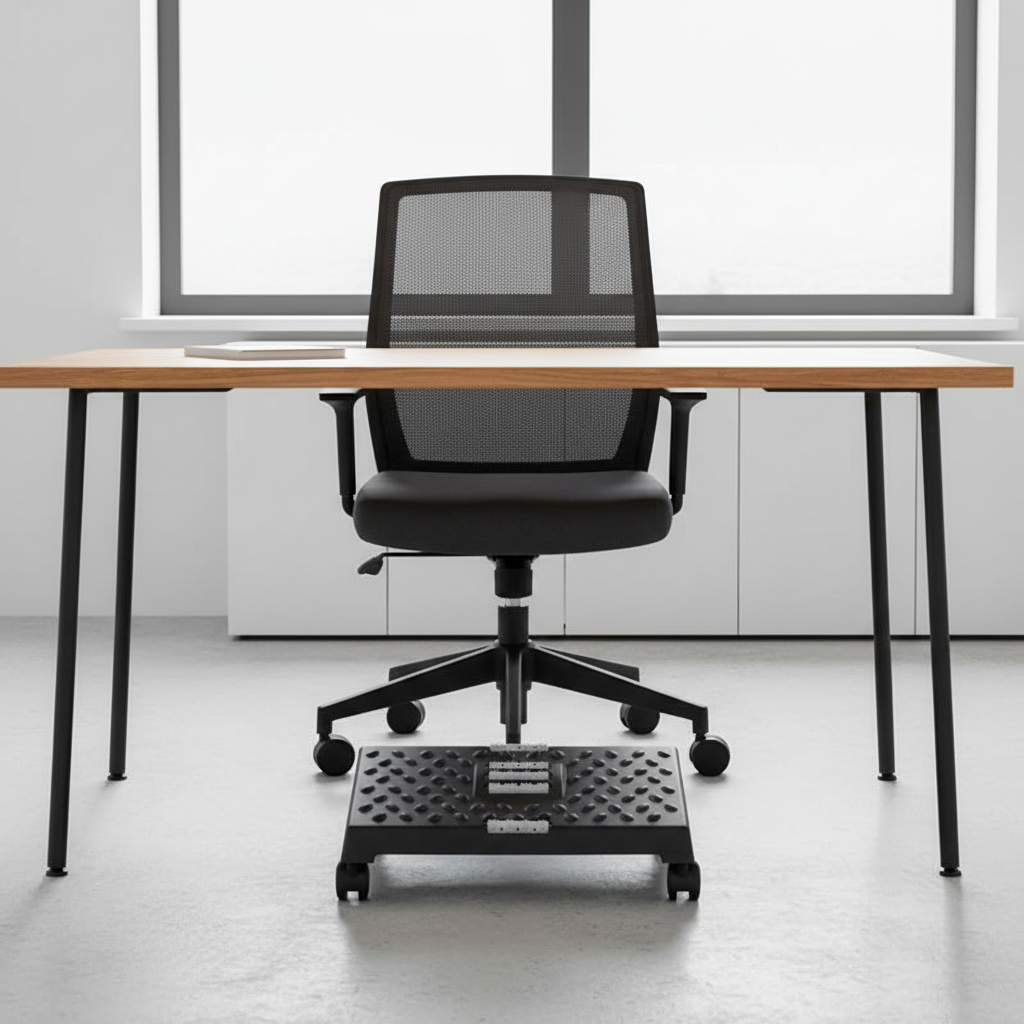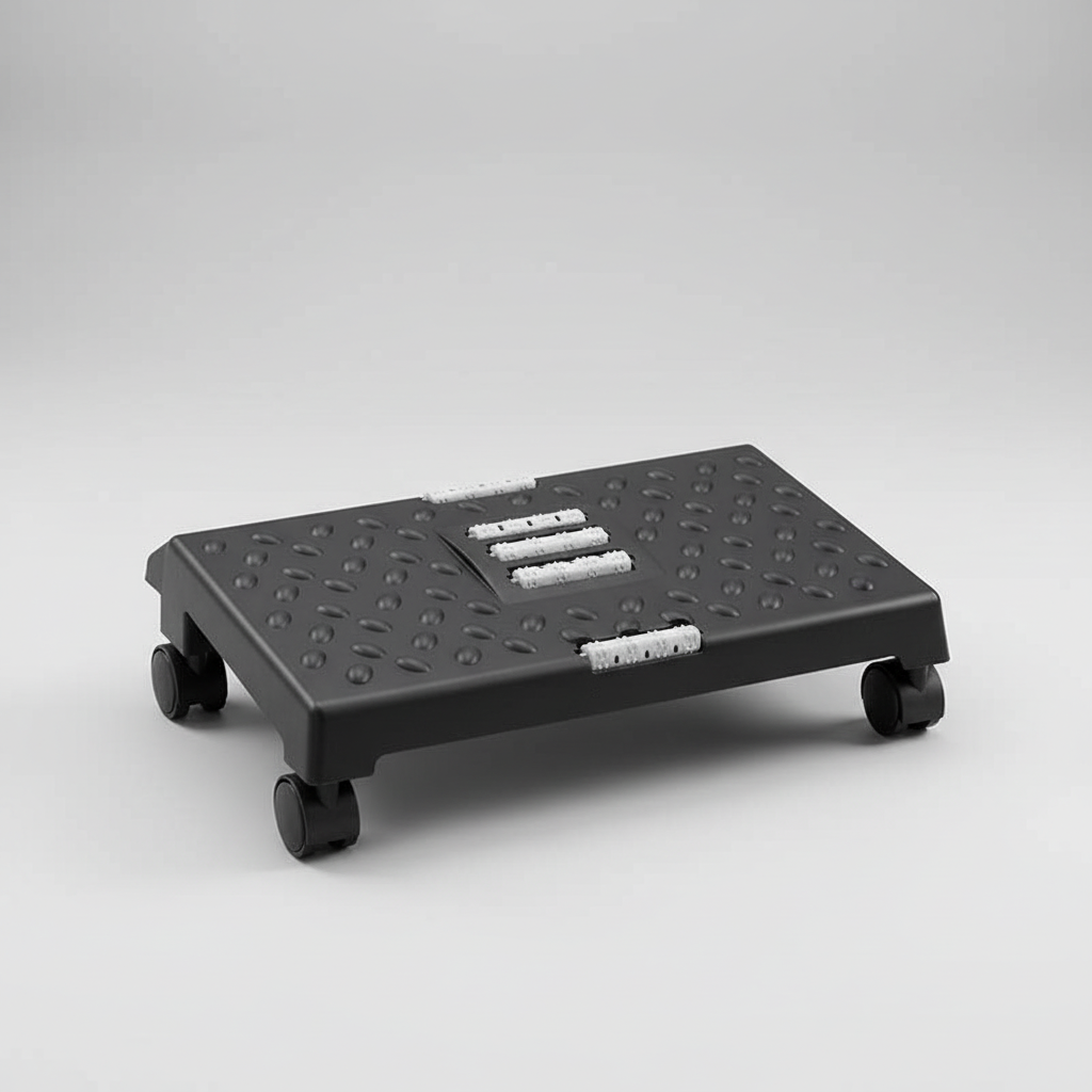 - Compatibilité / Conditions d’usage : Conçu pour être placé sous un bureau. Équipé de quatre roulettes pour faciliter le déplacement et le positionnement. La surface texturée offre une adhérence et une stimulation douce pour les pieds.